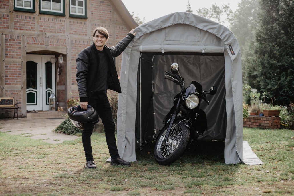 Ob Auto, Motorrad, Wohnwagen oder Boot – in der Zeltgarage bleiben eure Fahrzeuge auch bei Regen oder Schnee trocken und gut geschützt.